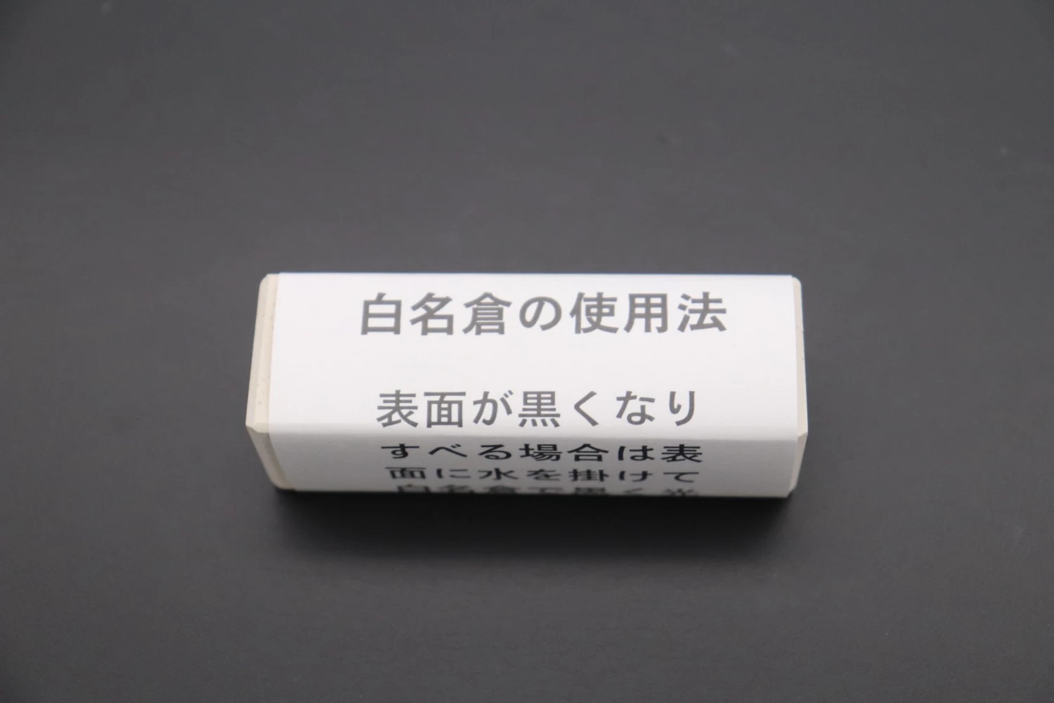 During the sharpening process, particularly when using super-fine grit finishing stones, the stone surface can sometimes develop slippery black areas that no longer cut well. With a little water, you can use the supplied Nagura dressing stone to remove these slippery black areas. Similarly, after flattening your whetstone with a coarse abrasive (Such as a diamond flattening plate, a ceramic flattening stone, or ‘wet&dry’ silicon carbide paper), the Nagura dressing stone can be used to smooth and refine the surface of your finishing stone.