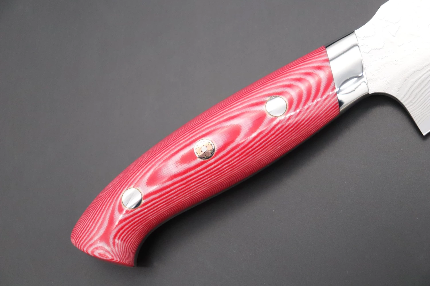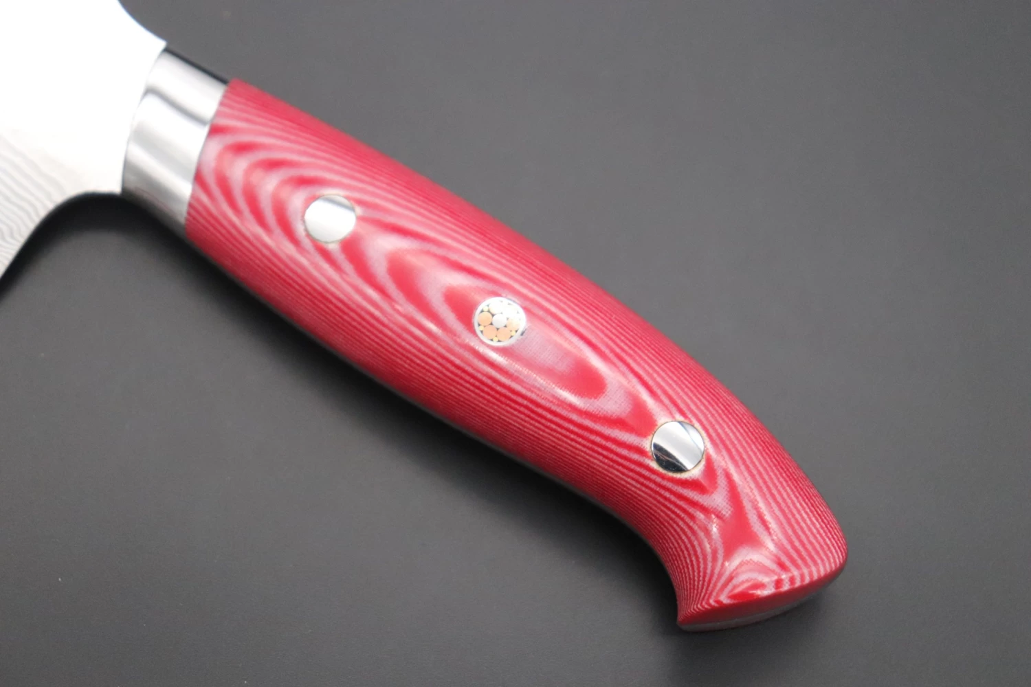 Handle Material: Red/White Linen Micarta Handle with Stainless Steel Bolster