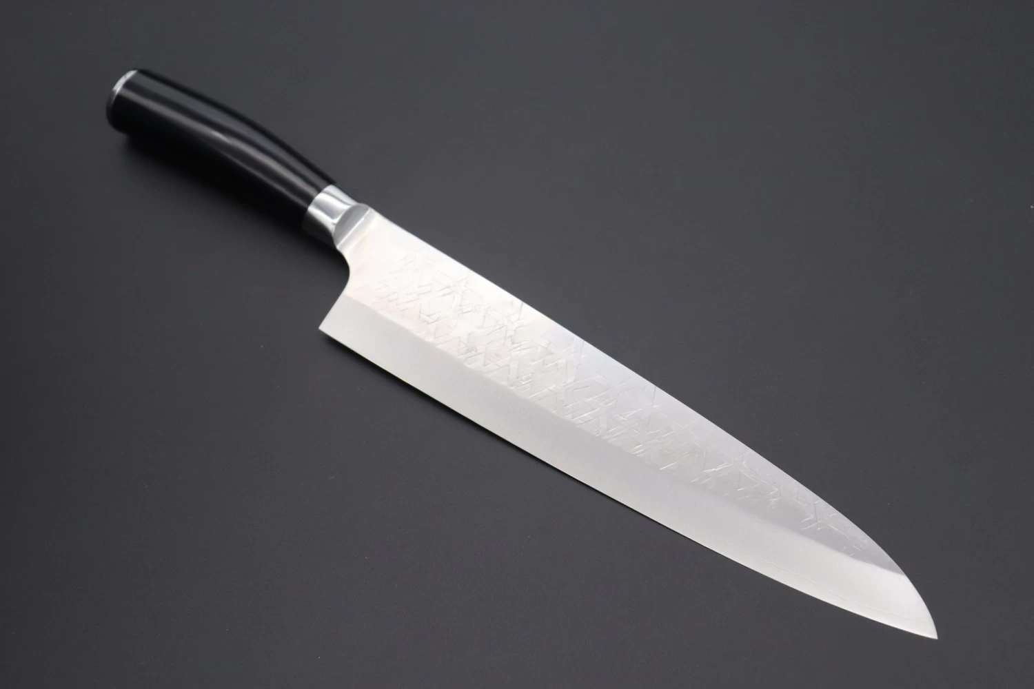 - Unlike German-made knives, Japanese knife blades are ground to a thin cutting edge for improved cutting performance and easier re-sharpening. Please protect the blade edge from hitting hard materials, or it might chip or crack.