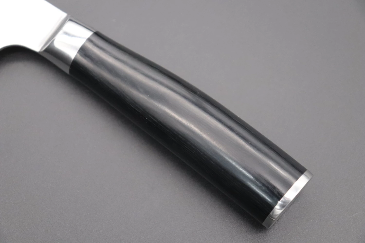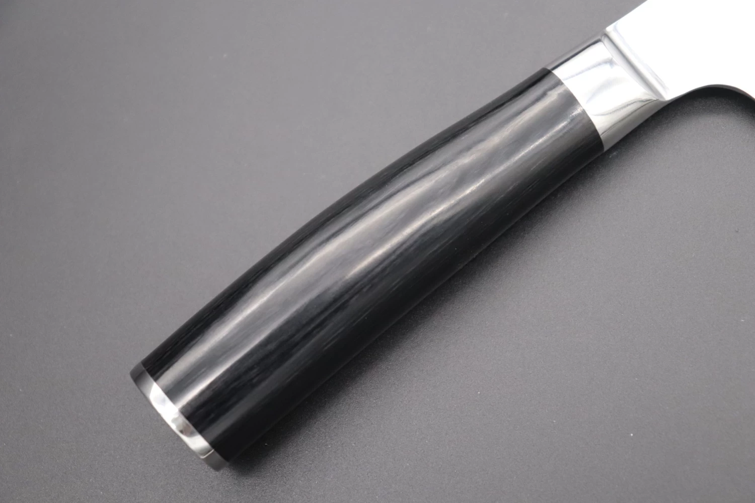 Master Saji has also created a new handle design for these knives, which provides a great grip and is finely balanced. A Simple & Good Durability Black Pakka Wood Handle, seamless stainless steel bolster & butt were chosen for durability and practicality. From the handle butt to the blade tip, the overall design forms a beautiful “ARC Line”. These innovative designs are the culmination of Takeshi Saji’s research and efforts to create a new range of highly practical knives and they are especially well suited to serious users and customers who value practicality.