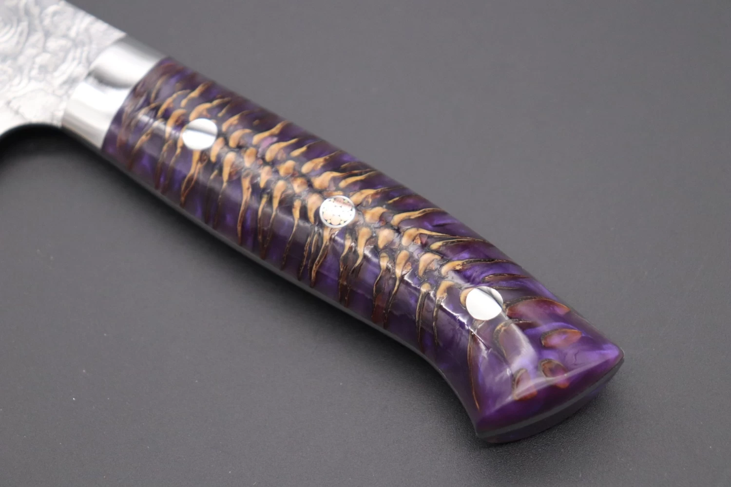 Handle Material: Purple Color Stabilized Spruce Cones Hybrid Wood Handle with Stainless Steel Bolster
