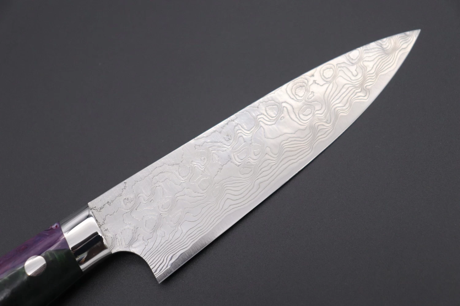 After testing and evaluating a very reputable Powdered Metallurgy High Speed Tool Steel, called “R-2” (Manufactured by Kobelco), he decided to produce an exciting new range of this traditionally hammer-forged Damascus kitchen knife using this modern ‘super steel’.
