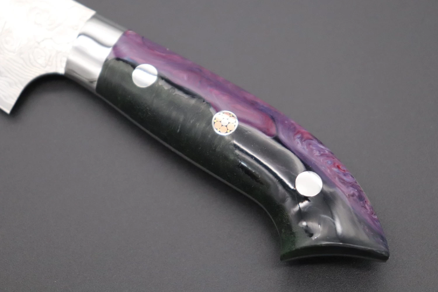 Handle Material: Forrest Green Color & Milky Purple Color stabilized Hybrid wood Handle with Stainless Steel Bolster