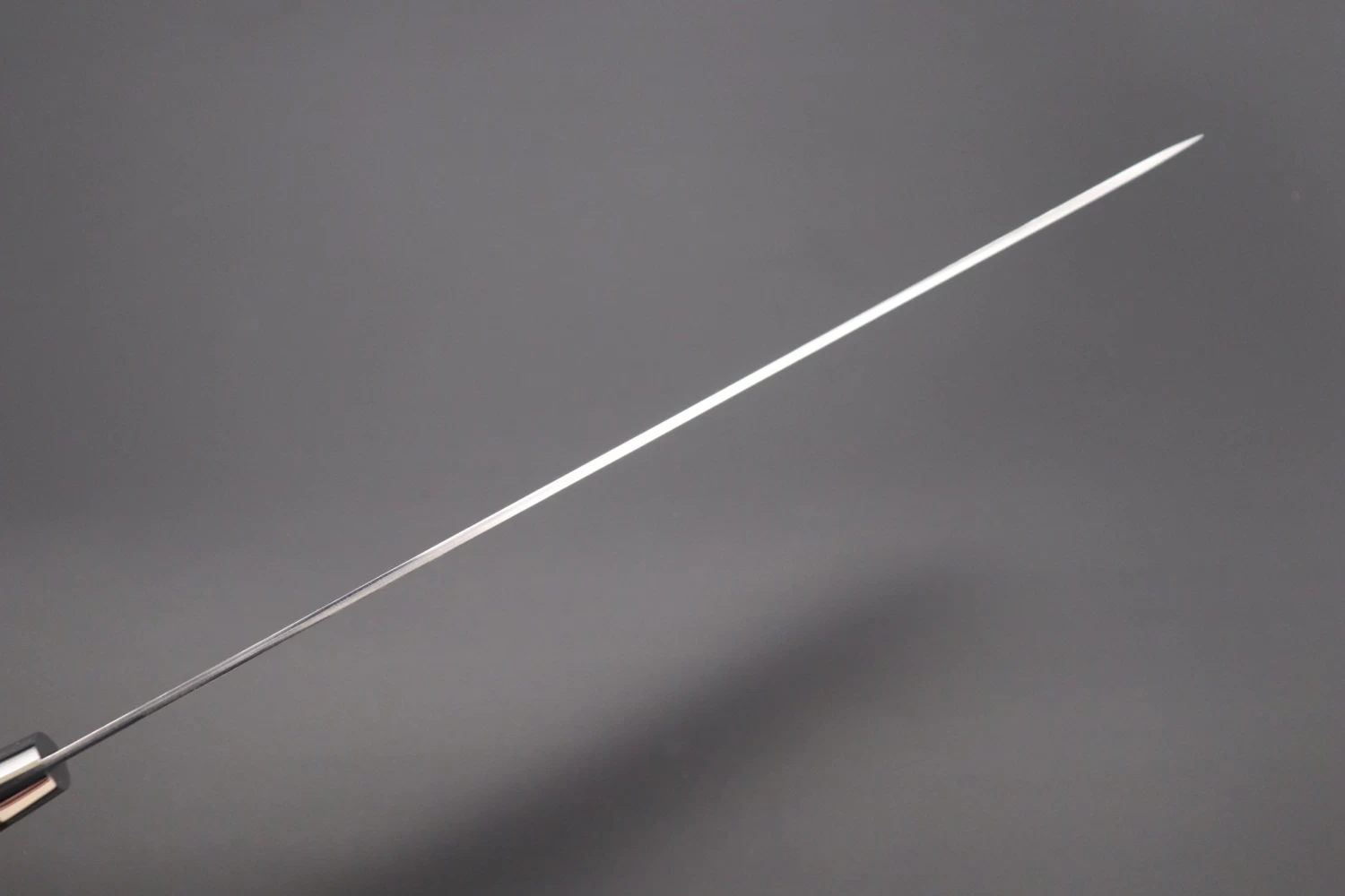 The long, narrow, graceful blade of the Sujihiki is particularly useful for trimming away sinew and fat from meat, finely slicing meat or boneless fish, or for filleting and skinning fish. The long blade allows the meat or fish to be cut in one single drawing motion, from heel to tip.