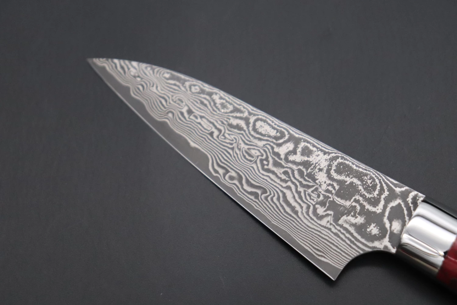 After testing and evaluating a very reputable Powdered Metallurgy High Speed Tool Steel, called “R-2” (Manufactured by Kobelco), he decided to produce an exciting new range of this traditionally hammer-forged Damascus kitchen knife using this modern ‘super steel’.
