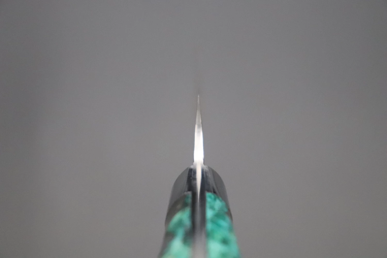 Handle Material: Transparent Super Silver Color, Stabilized Emerald Green Color Hybrid Wood Handle with Stainless Steel Bolster