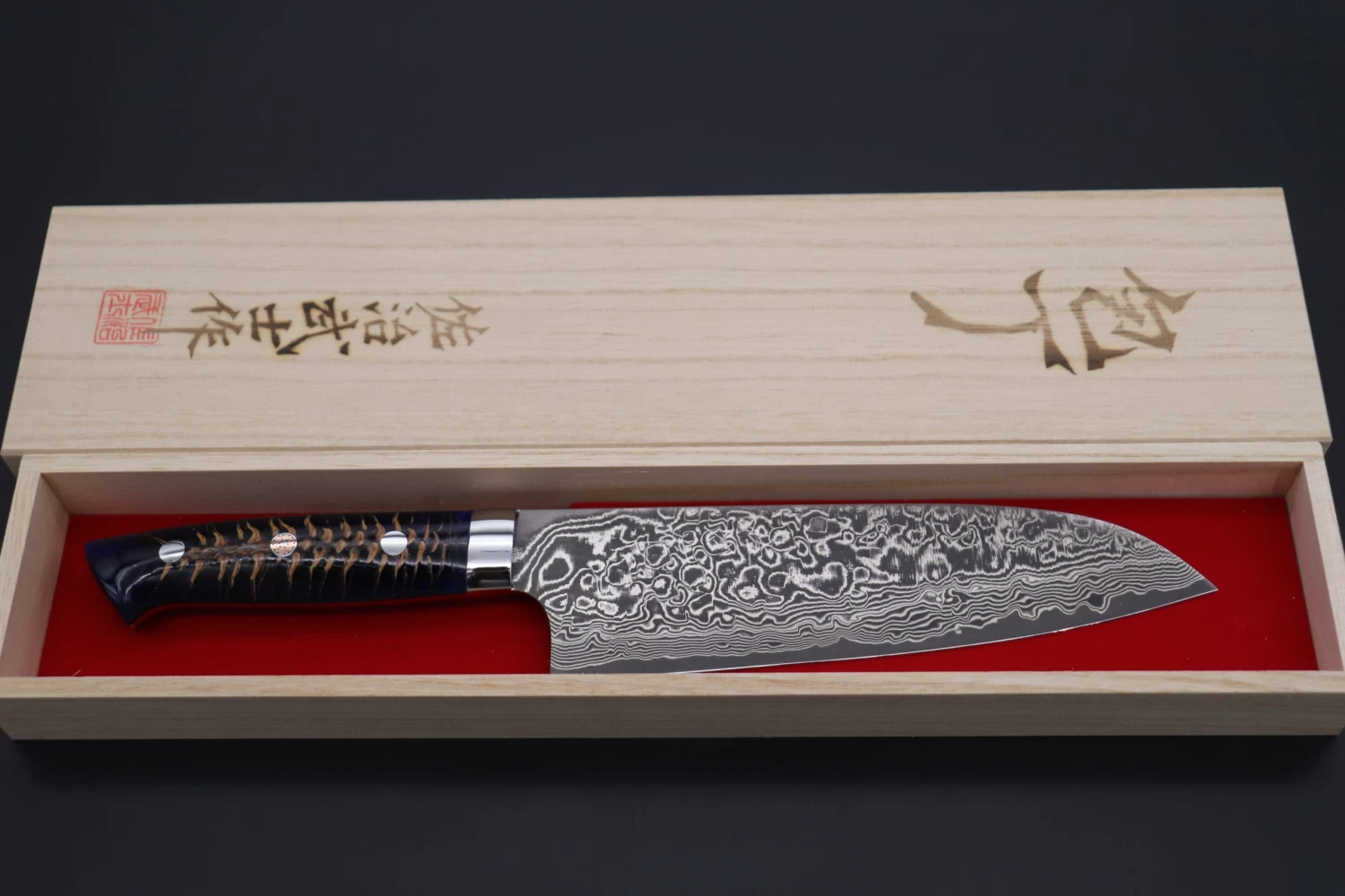 Knife Model: Takeshi Saji SUMMIT ― Limited Edition Custom Series R-2 Custom Damascus Santoku