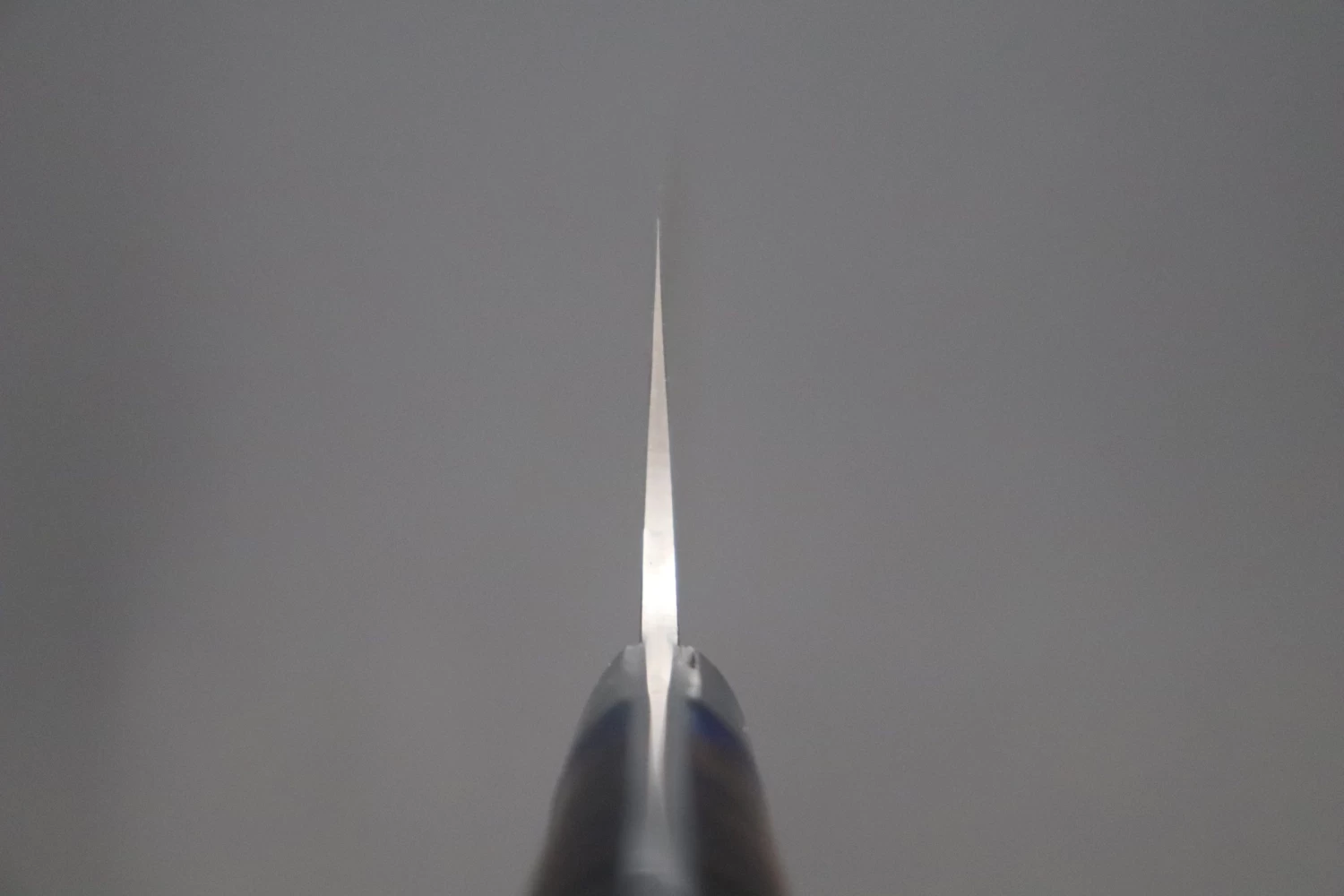 The tall blade and rounded nose / tip of the Santoku make it a versatile knife that is well suited to cutting meat, fish, or vegetables; Hence it’s name, which literally means “Three-purpose”. The Santoku is often recommended as a multi-purpose kitchen knife.