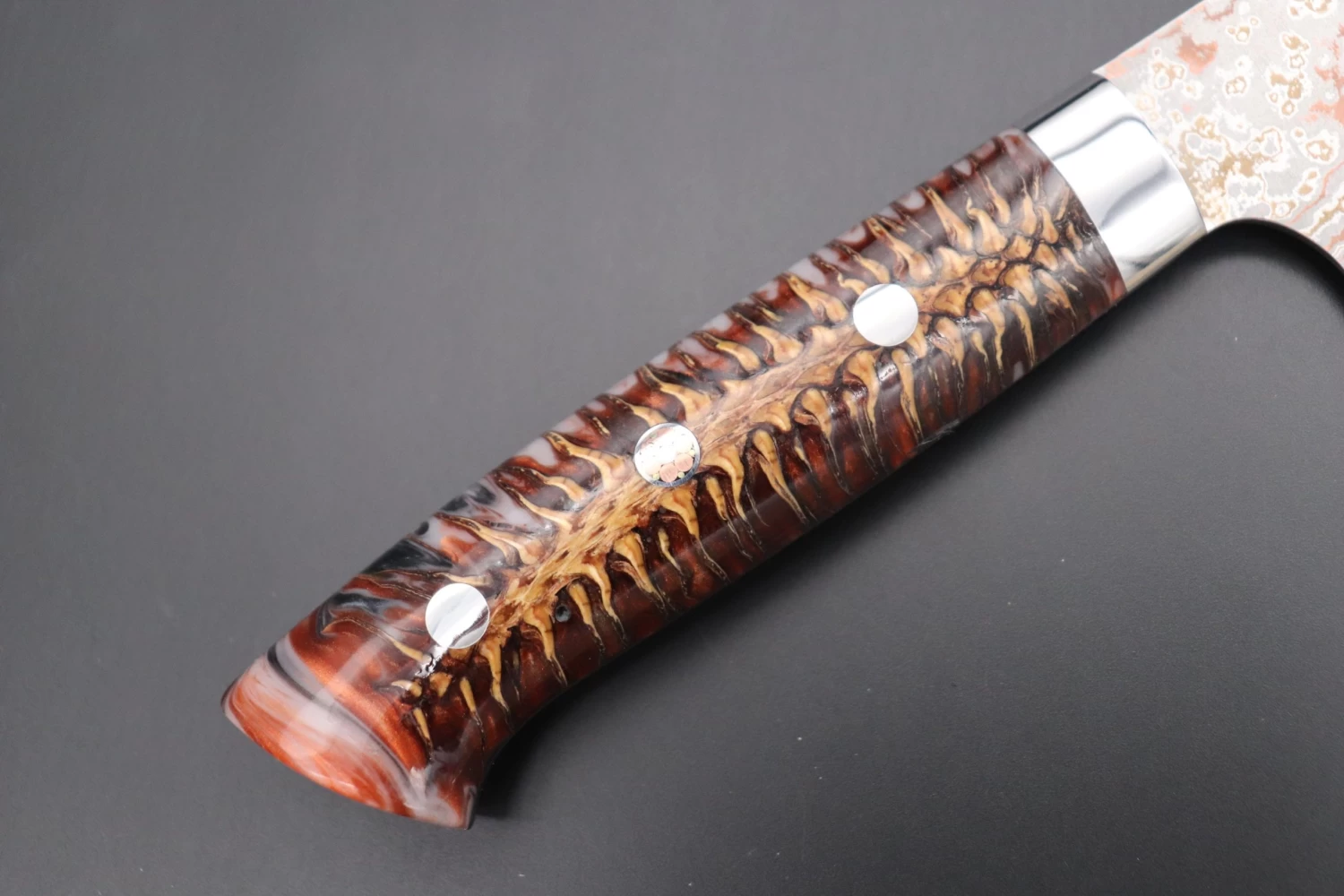 Blade Material: VG-10W Multi-Colored Golden-Rainbow Damascus