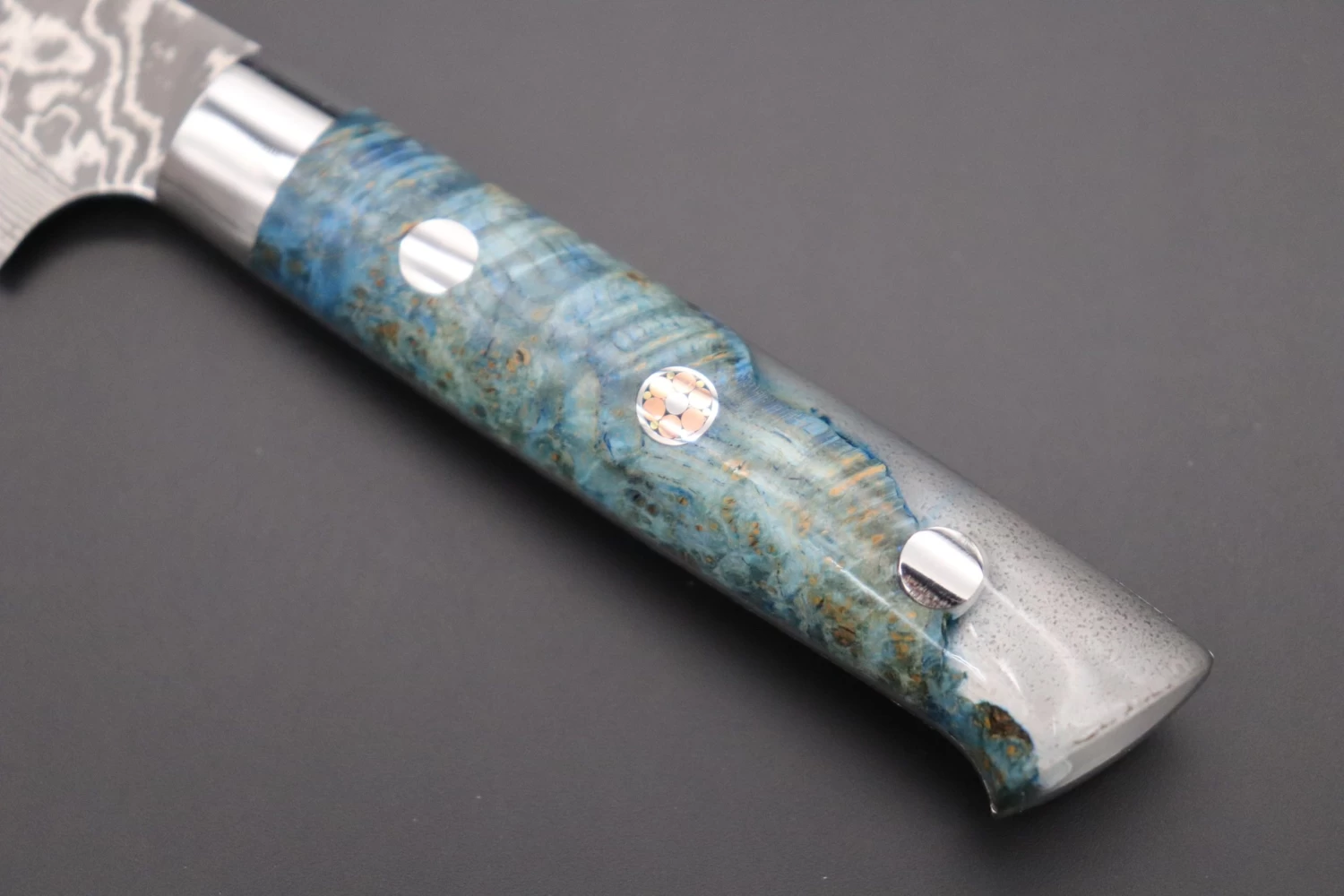 Handle Material: Transparent Super Silver Color, Stabilized Ocean Blue Color Hybrid Wood Handle with Stainless Steel Bolster
