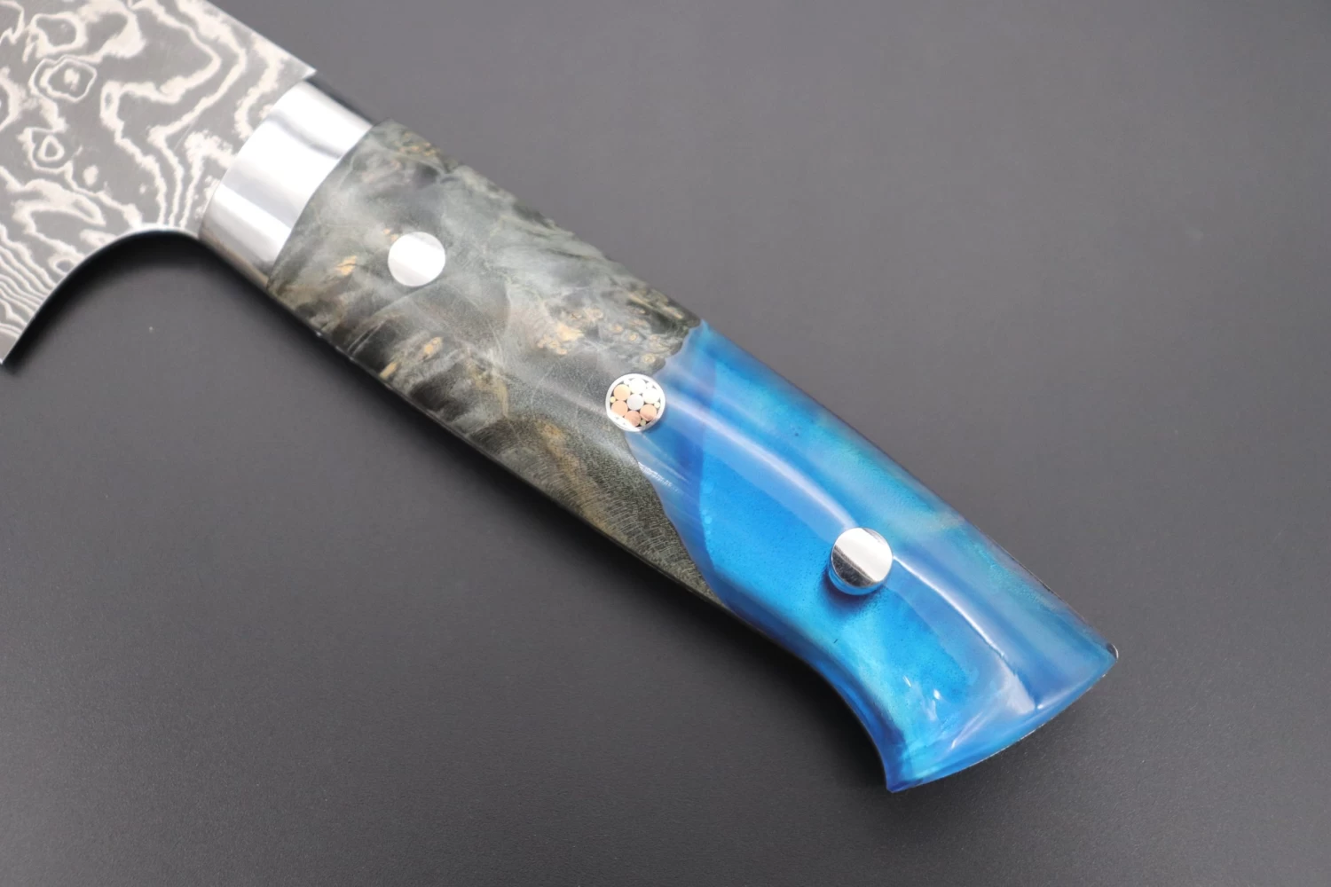 Handle Material: Khaki Color & Transparent Ocean Blue Color stabilized Hybrid wood Handle with Stainless Steel Bolster
